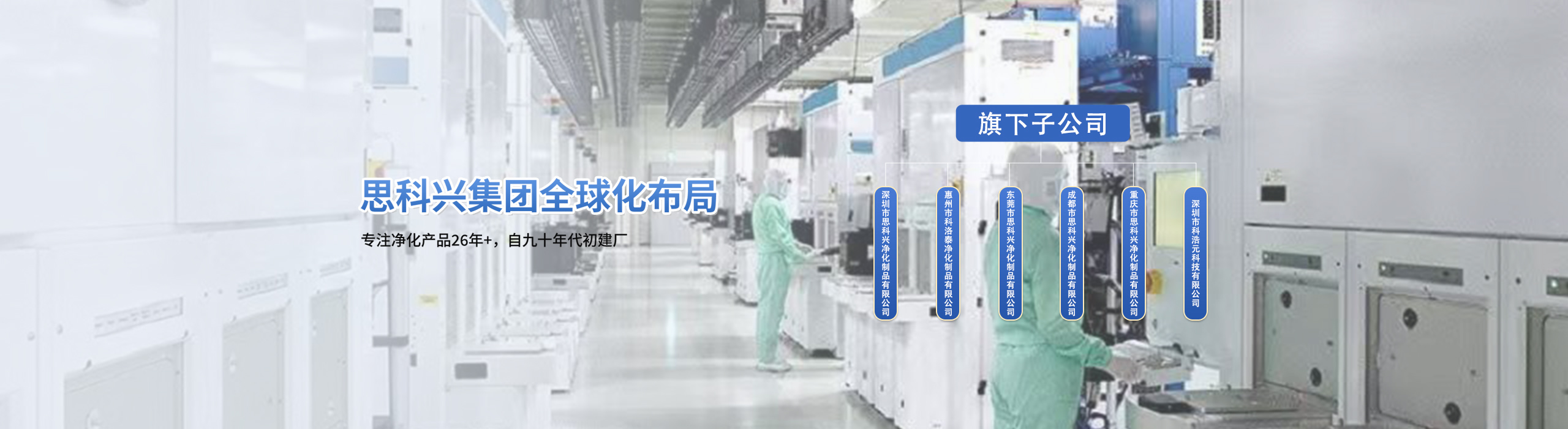 我公司于1998年2月成立深圳市思科兴集团,在未来不断发展的领域里,我司陆续成立了惠州,龙岗,东莞,重庆,成都等分公司,在2021年11月24日成立惠州市科洛泰净化制品有限公司,其面积3600平方米,于2024年初已正式在惠州投产,