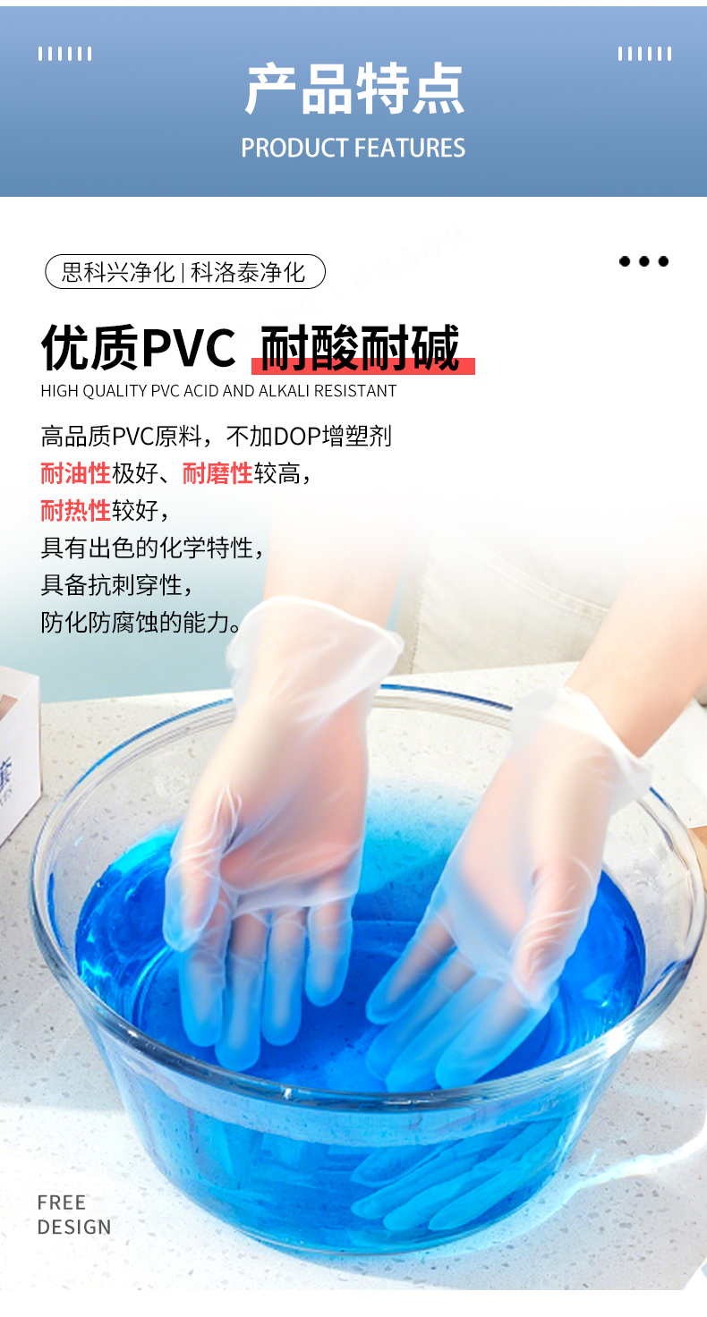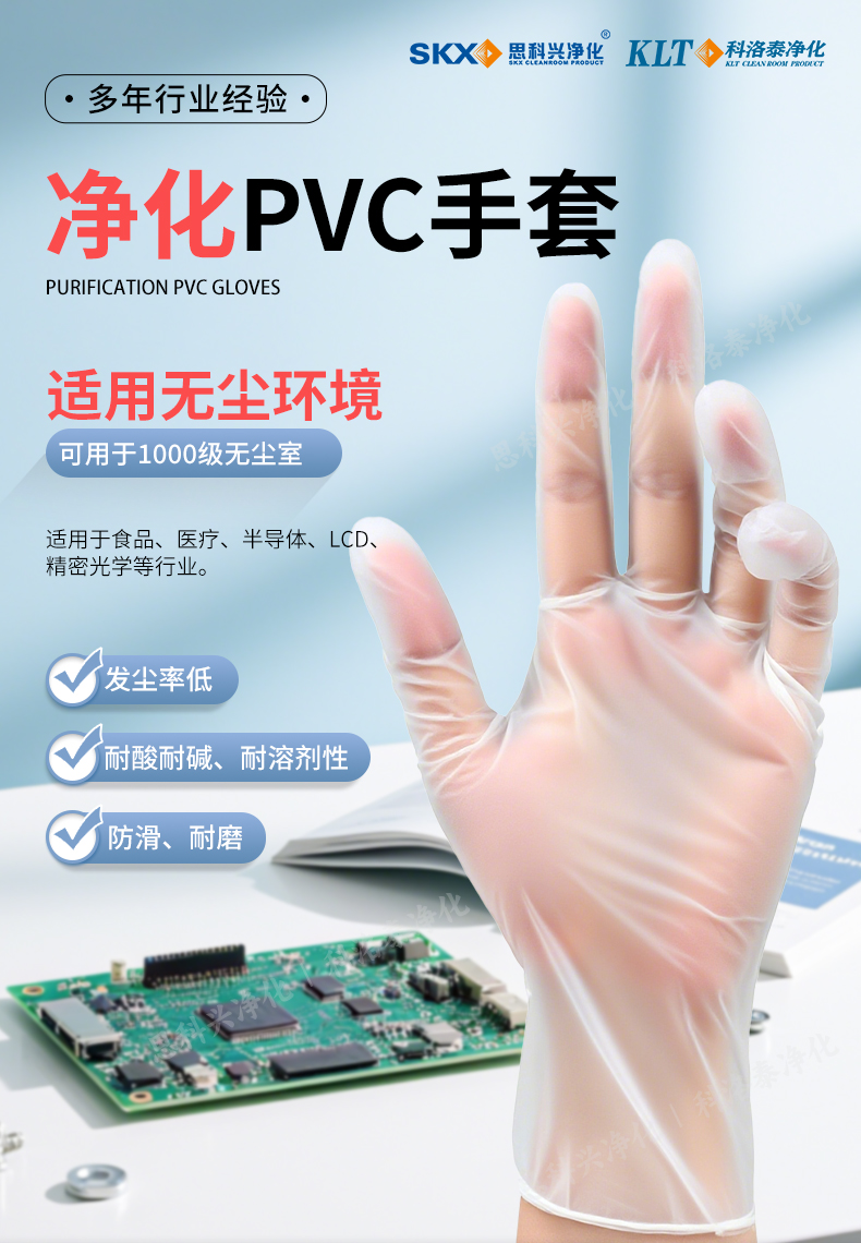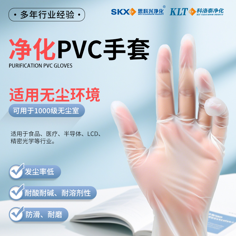 净化pvc 手套:100%PVC树脂