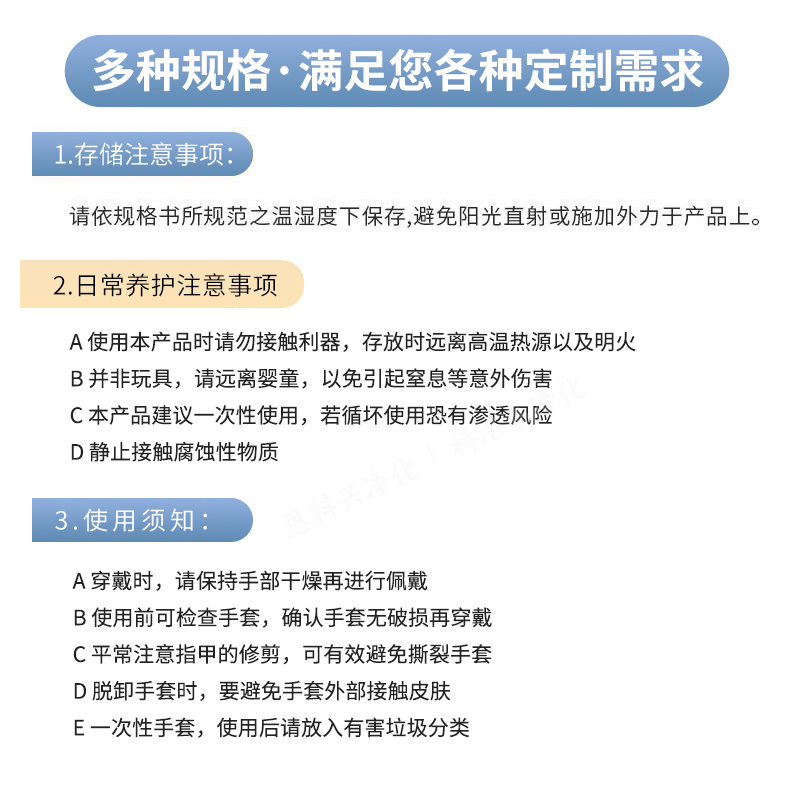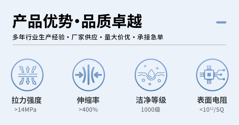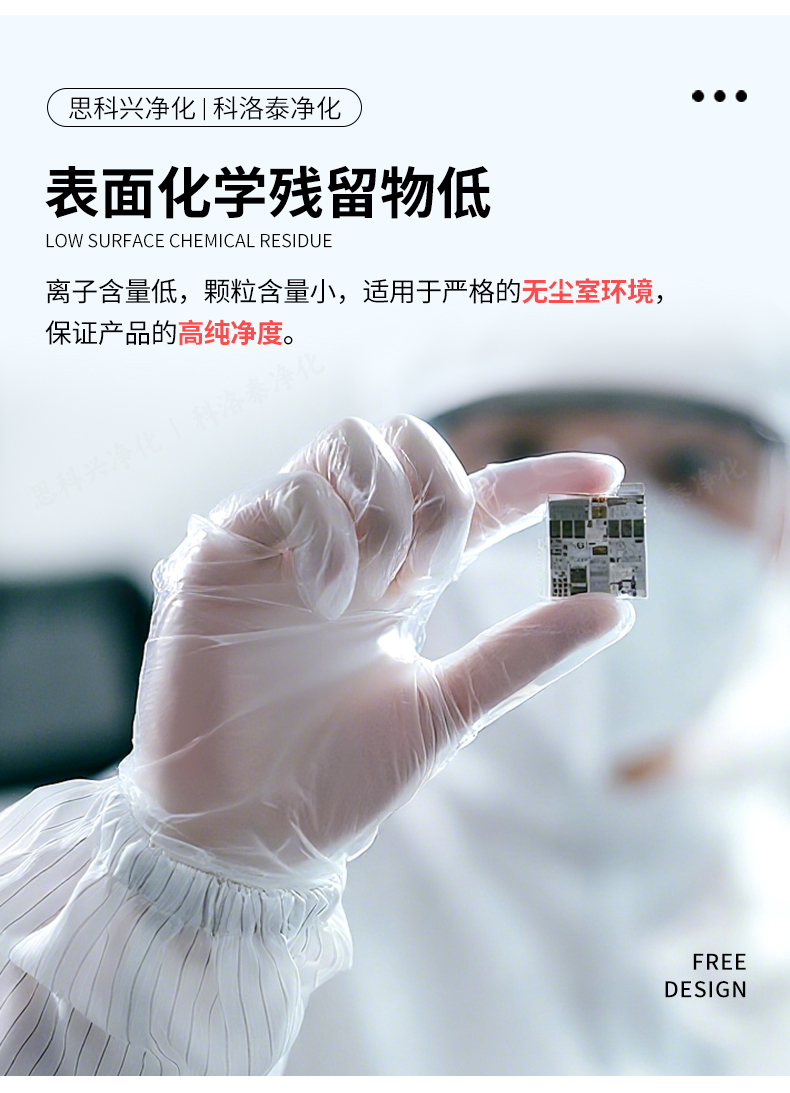 低发尘量、离子含量、防静电;