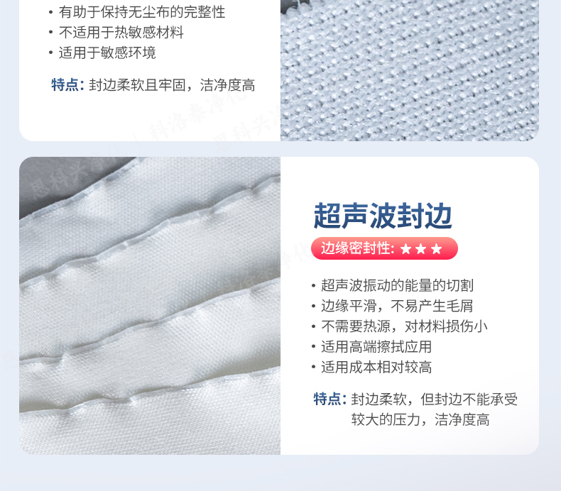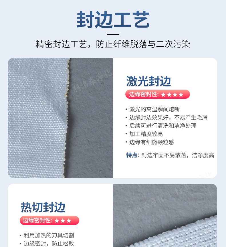 切边方式:超声波UE、激光LE、热切HE、三种方式有效防止纤维脱落。