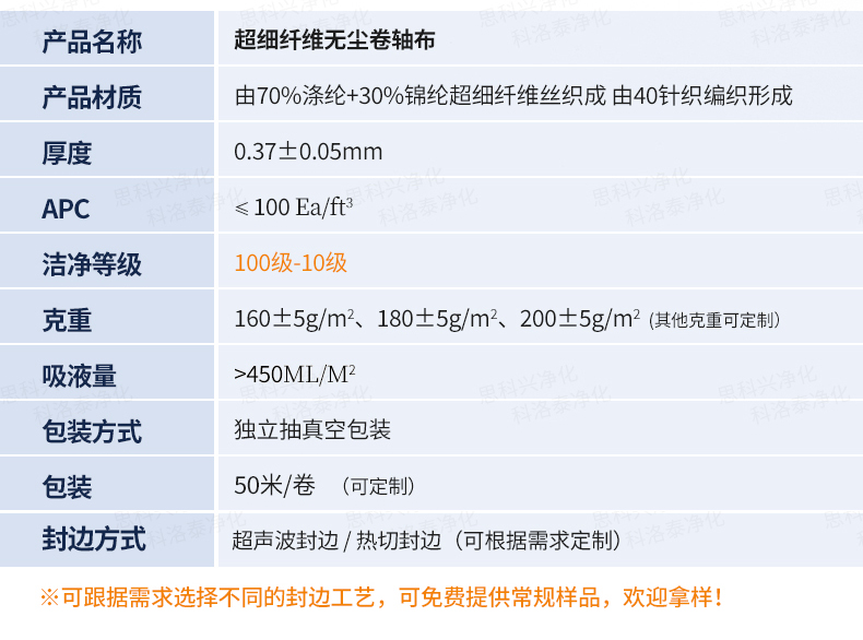 克 重160±5g/m²、180±5g/m²、200±5g/m²(可定制)