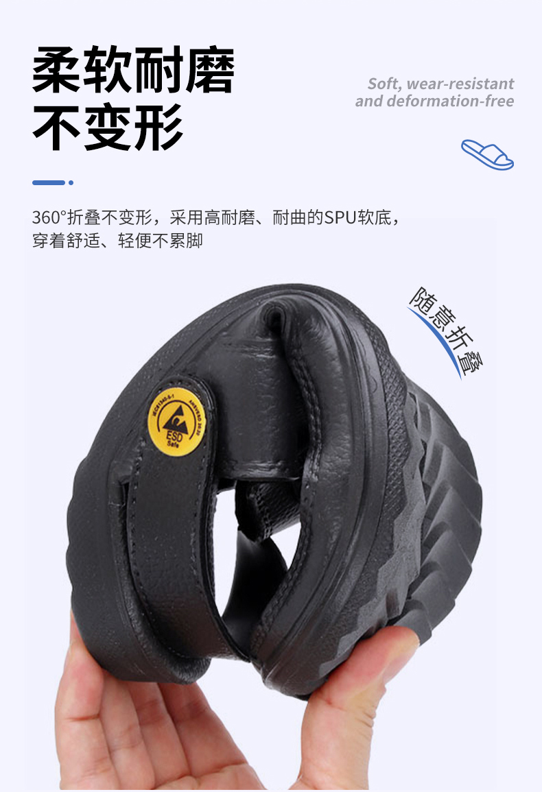高效防静电,性能稳定:通过特殊导静电工艺,可将人体积聚的静电荷高效导入大地,有效消除静电;产品表面电阻值稳定保持在 10⁶-10⁸Ω 区间,符合防静电性能标准,能持续满足静电敏感环境的防护需求。