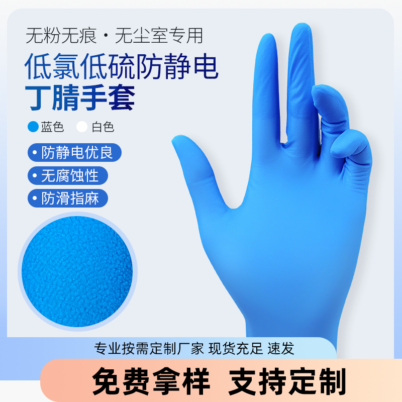 低氯低硫防静电丁腈手套